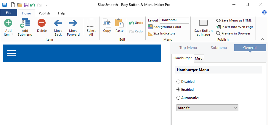 Easily create responsive, auto-adapting hamburger-style mobile-ready web menus.