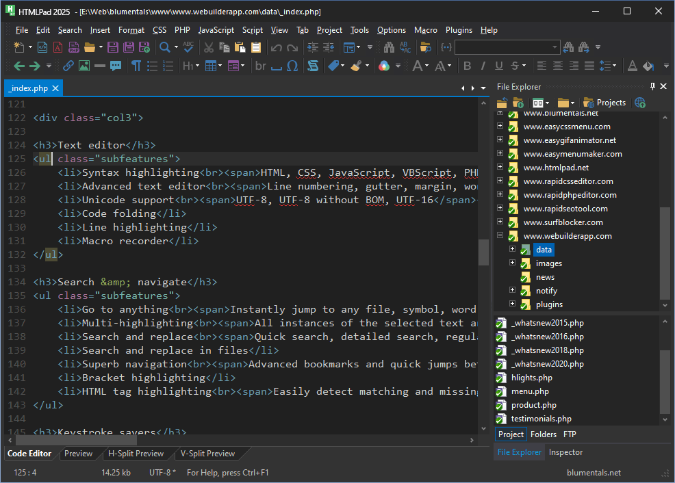 Instantly detect HTML errors. HTML highlighting features also makes navigating and reading HTML code much easier.